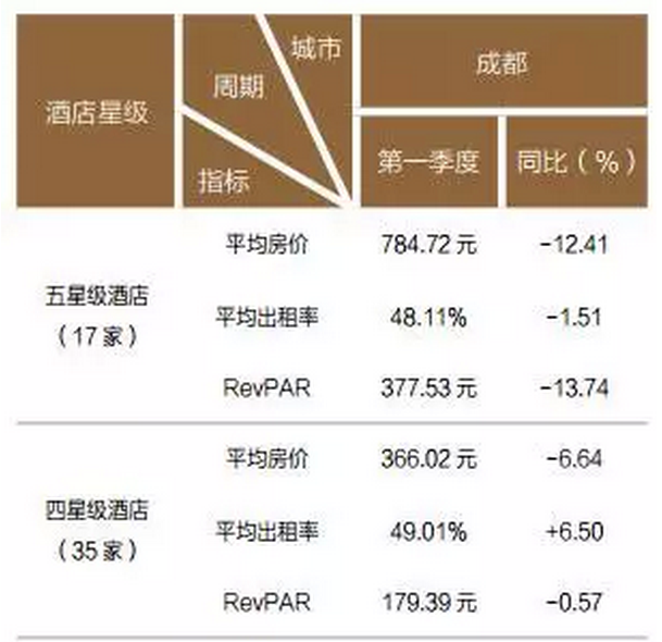 點(diǎn)評:成都五星級酒店一季度的經(jīng)營業(yè)績 5 年來持續(xù)走低,2015 年一季度下降幅度較大;四星級酒店一季度的經(jīng)營業(yè)績近 2 年下降幅度大;三星級酒店 2015 年一季度的經(jīng)營業(yè)績有所回升;二星級酒店 2015 年一季度的經(jīng)營業(yè)績下降幅度很大。